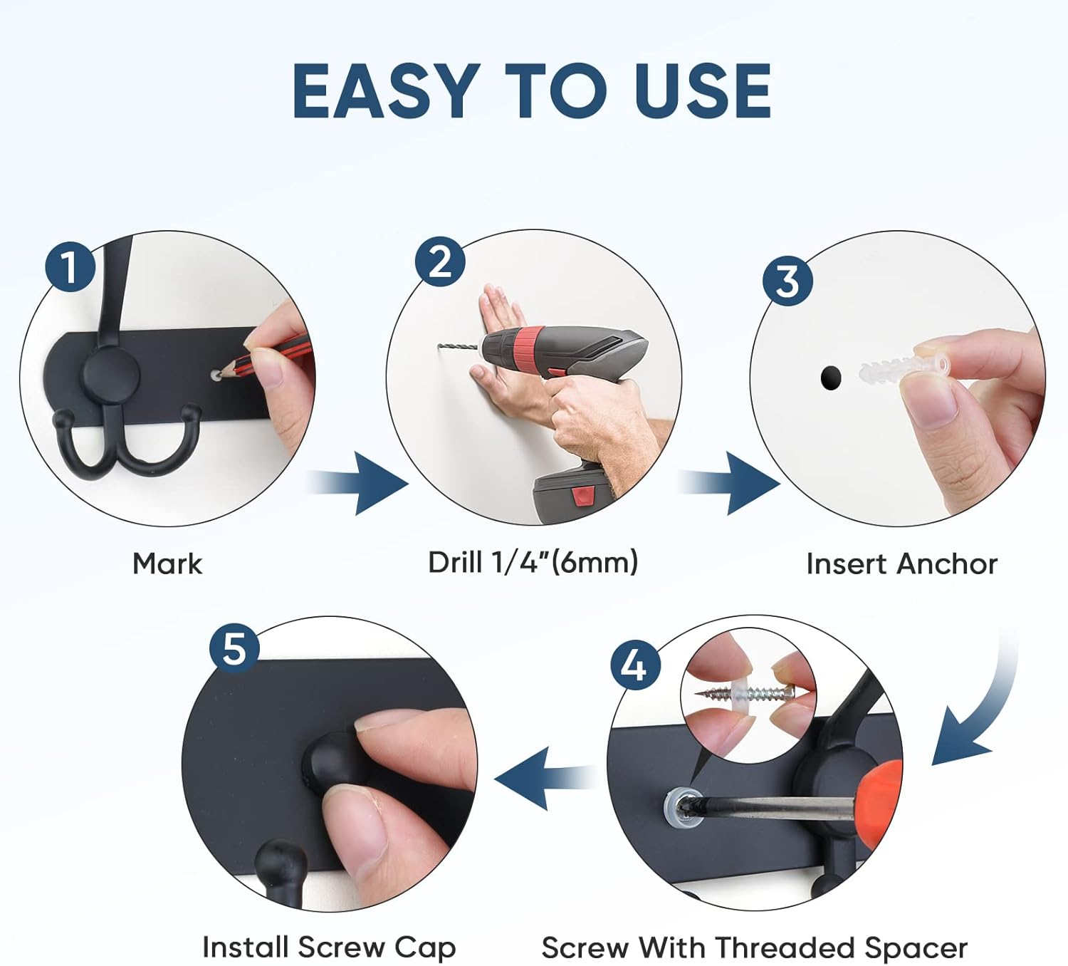 [PREMIUM QUALITY] TICONN wall-mounted coat hanger built with premium material. With the combination of stainless steel backing plate and aluminum alloy hooks, each tri-hook can hold up to 11lbs.