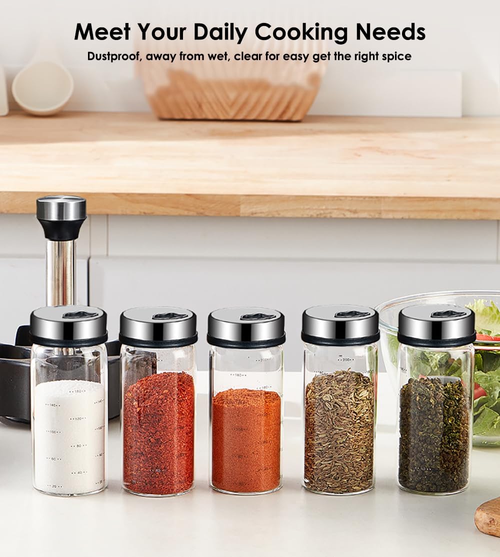 3 Different Dispensing Mode Cover : With 3 different outlet cap, 360 rotating suitable for dispensing herbs and spices in different coarse and fine. The spice bottle is made of high borosilicate glass, heat and cold resistance for easy clear