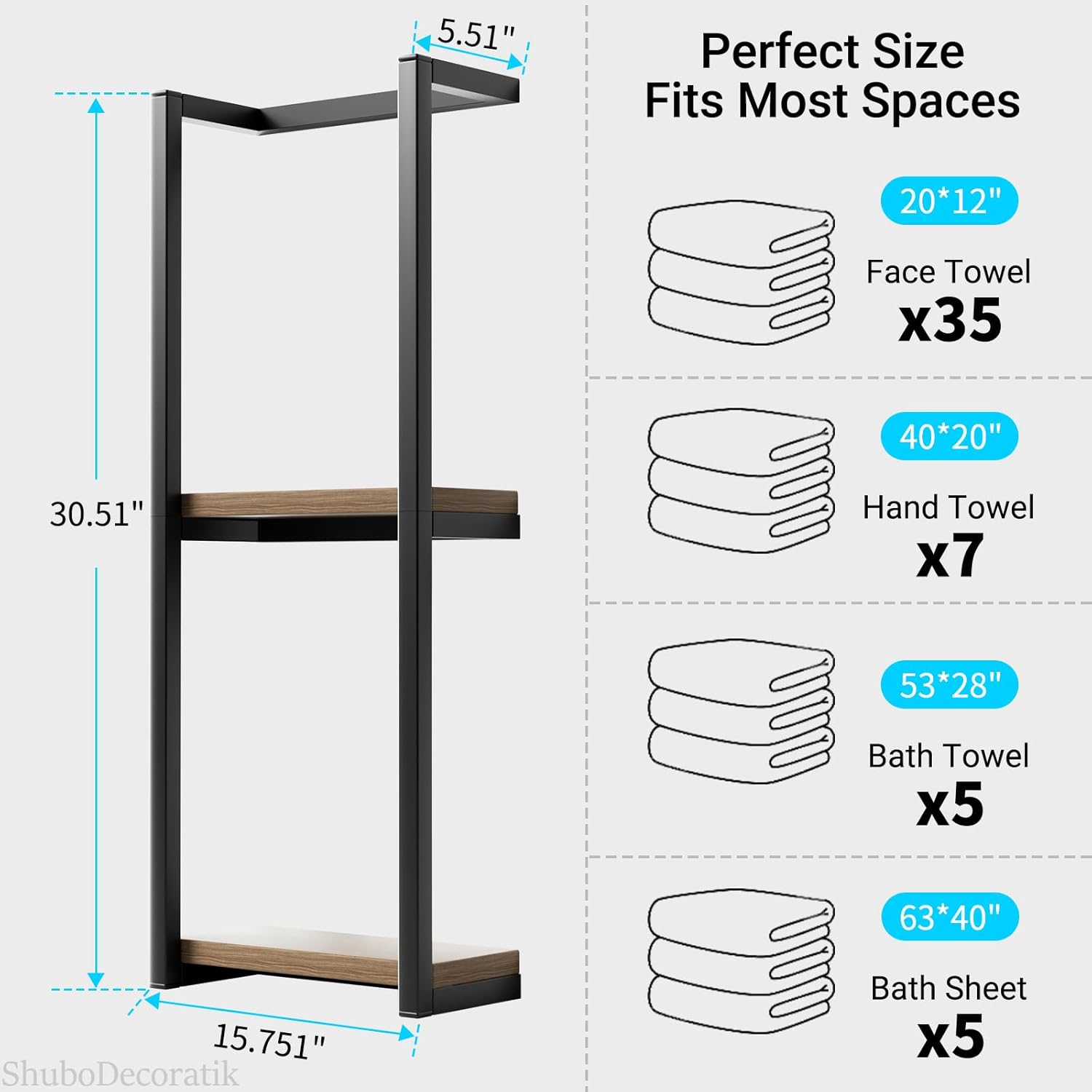 Storage Capacity: Holds up to 6 or more large towels with organized compartments for efficient bathroom storage