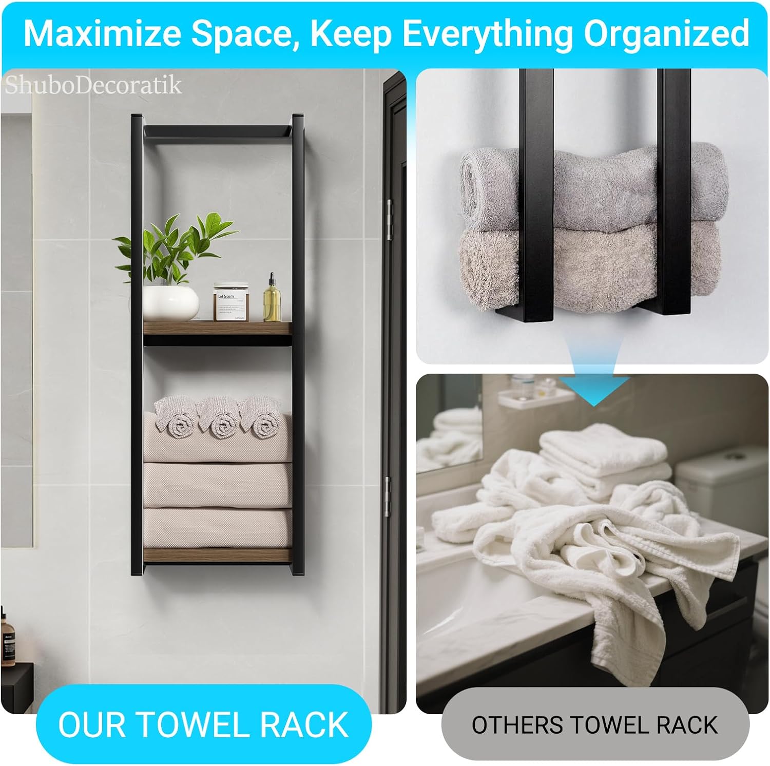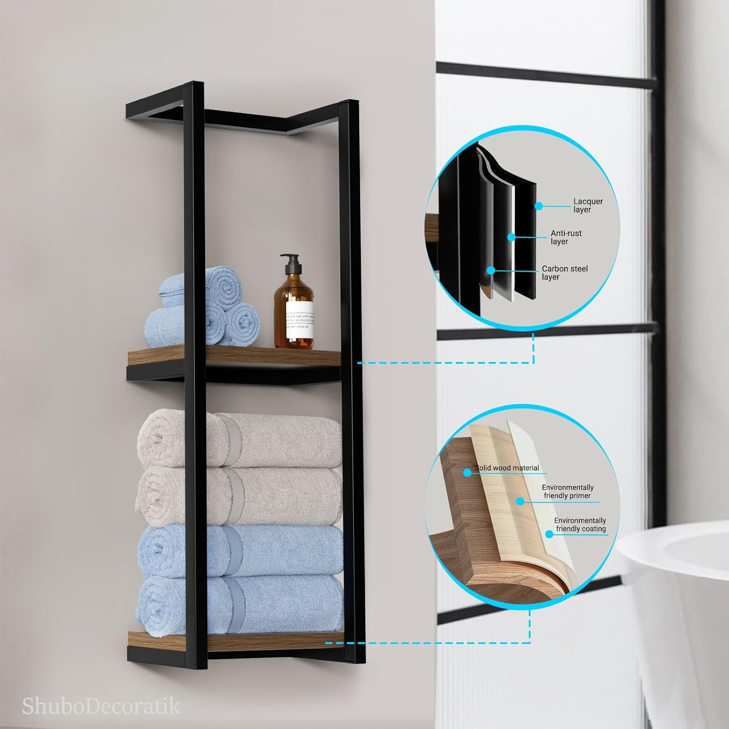 Towel Racks for Bathroom, 2 Tier Wall-Mounted Towel Rack, Home Decor Shelf, Space-Saving Organizer Rack for Household, Bathroom, and Bedroom