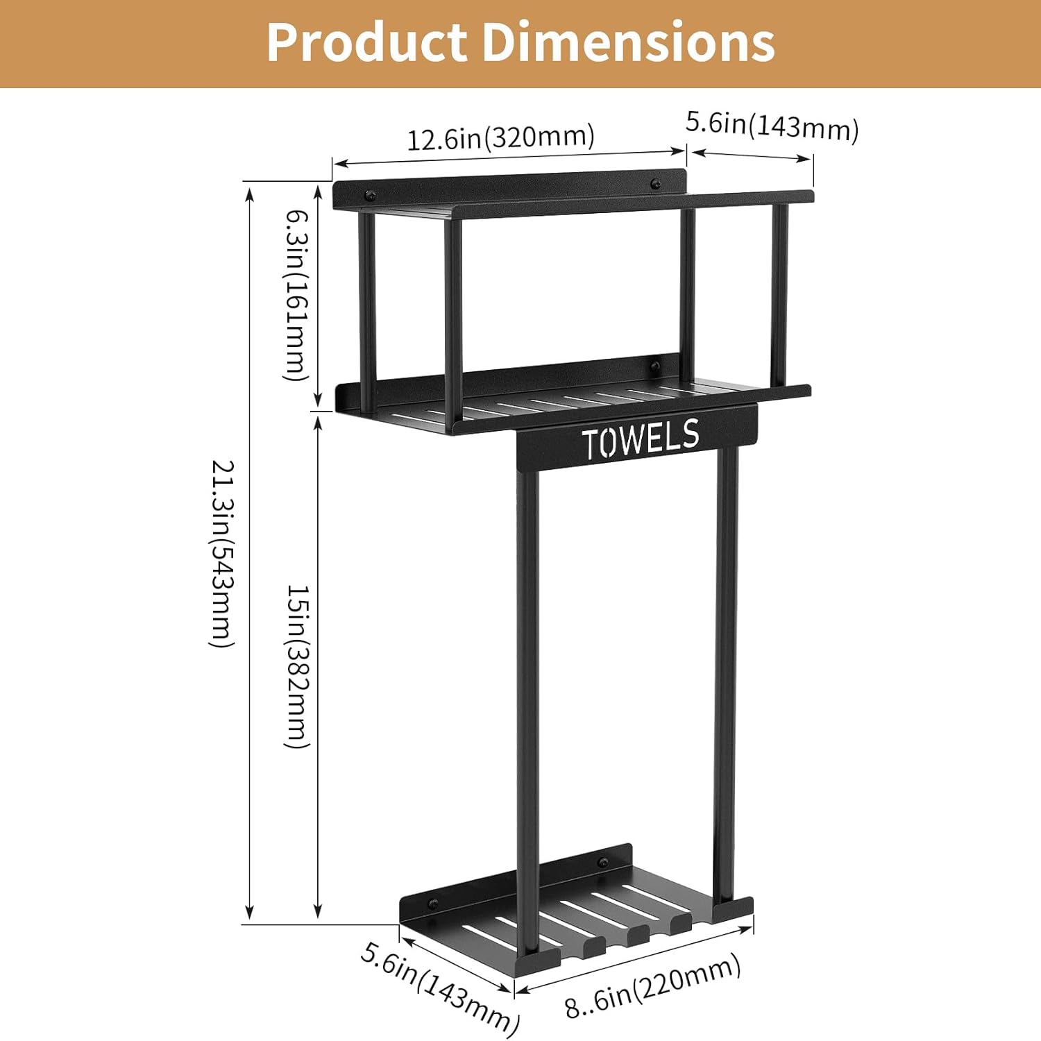 Space Saving Towel Organizer with Hooks:This towel rack for bathroom measures 20.87″H x 12.6″L x 5.6″W, with enough space to hold multiple towels. The compact design makes efficient use of vertical space and maximizes storage space, making it easy to keep your bathroom tidy
