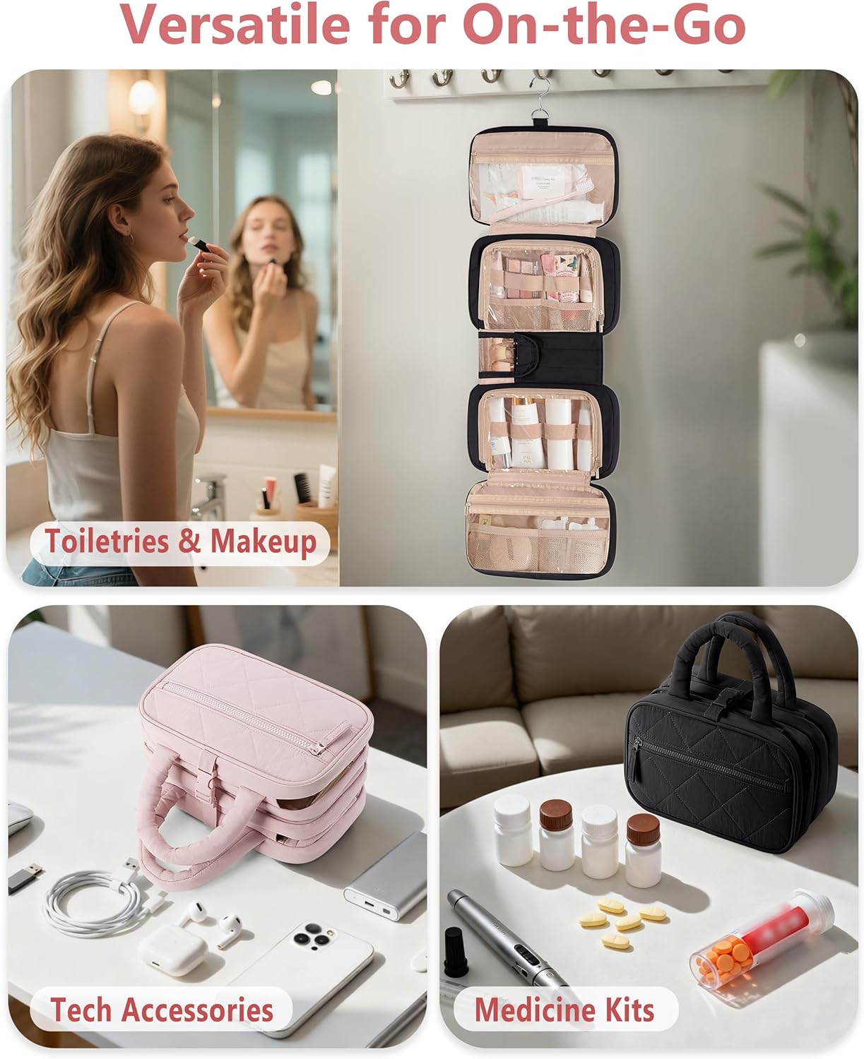 ๐-๐ข๐ง-๐ ๐๐๐๐ญ ๐๐ซ๐ ๐๐ง๐ข๐ณ๐๐ญ๐ข๐จ๐ง: Five thoughtfully designed sectionsโ2 U-zip compartments, 2 clear pockets, and 1 brush pocketโkeep toiletries, makeup, and travel essentials neatly sorted.