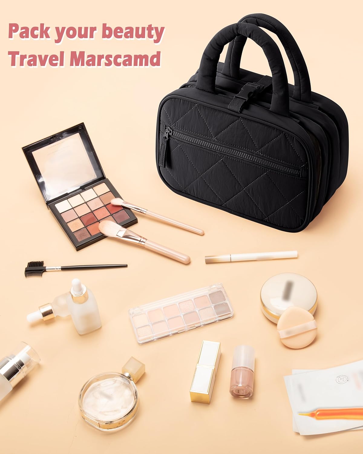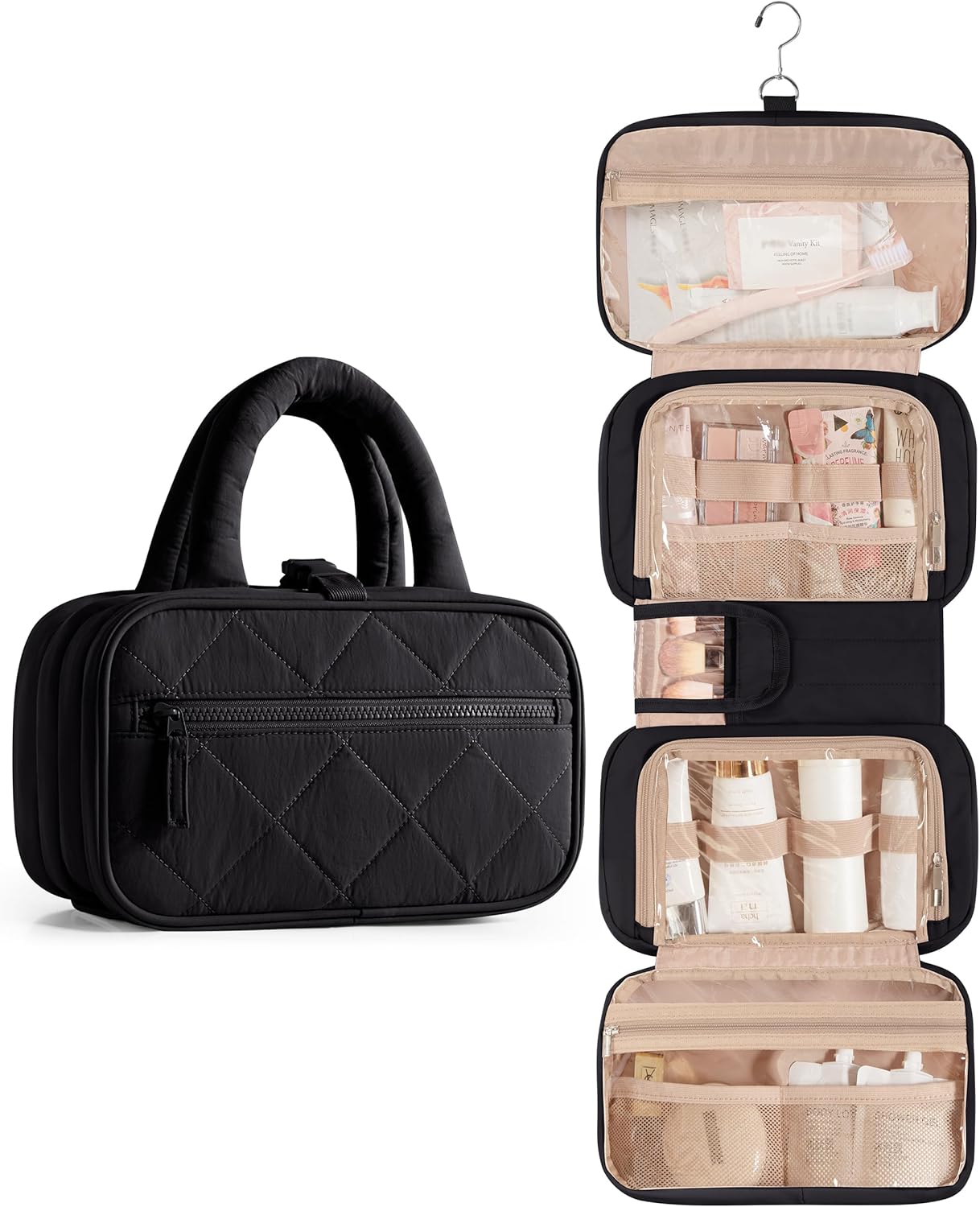 Travel light with the Marscamd Puffy Toiletry Bag. Five organized sections keep skincare, makeup, and toiletries neat and easy to grab, while the hanging design saves space wherever you go. Perfect for trips or everyday useโitโs soft, practical, and made to keep things simple.