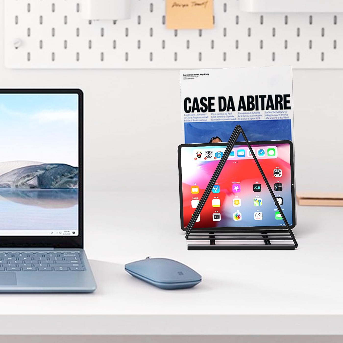 Upgraded Triangle File Organizer: This triangle bookshelf holder is made of quality iron wire materials,easy to clean. Compared to the original design, the added detachable base provides great stability and greatly reduces sliding on the desktop. Your files or books will never fall over.