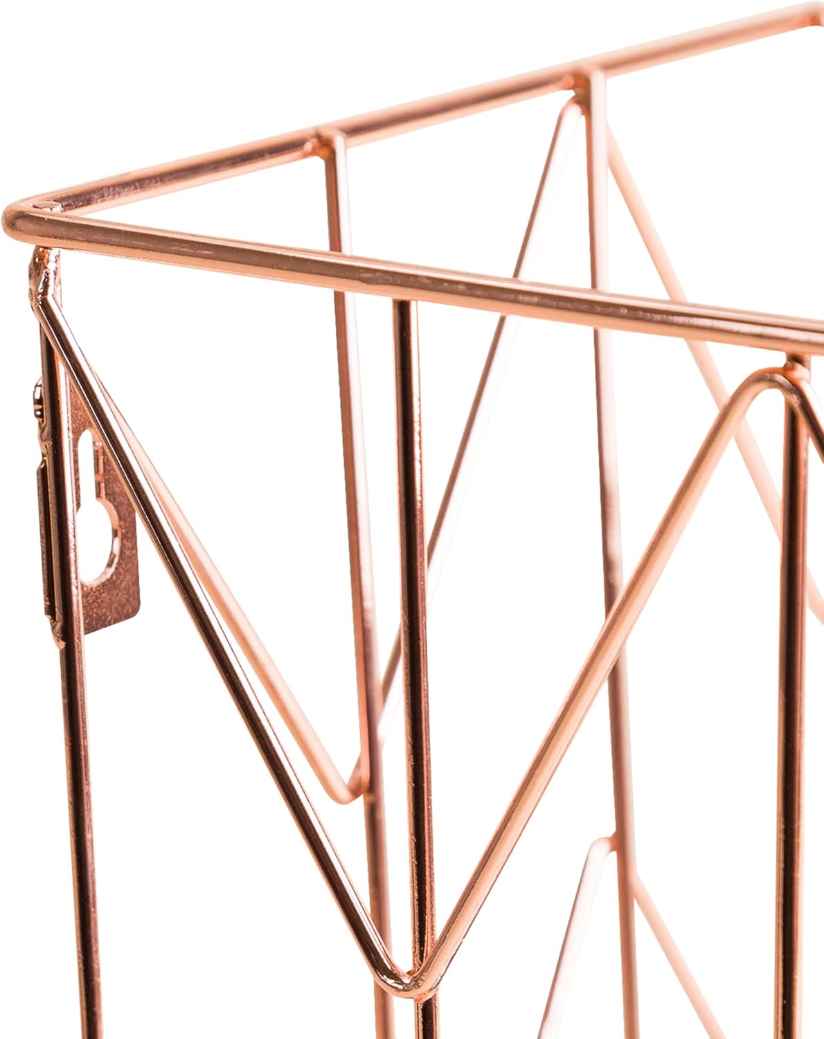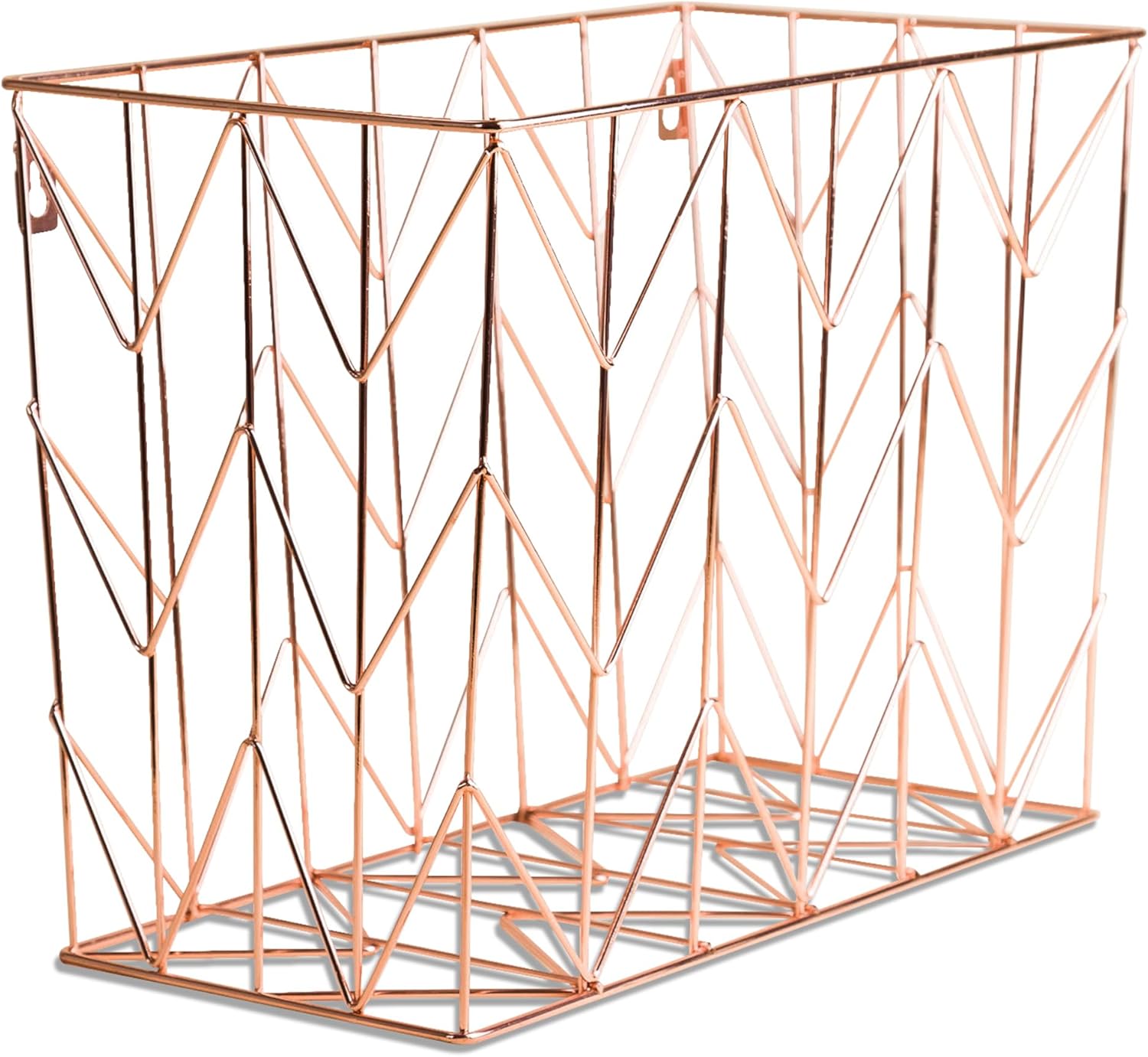 Add sophistication and style to your desk or office with this unique wire hanging file basket in copper/rose gold