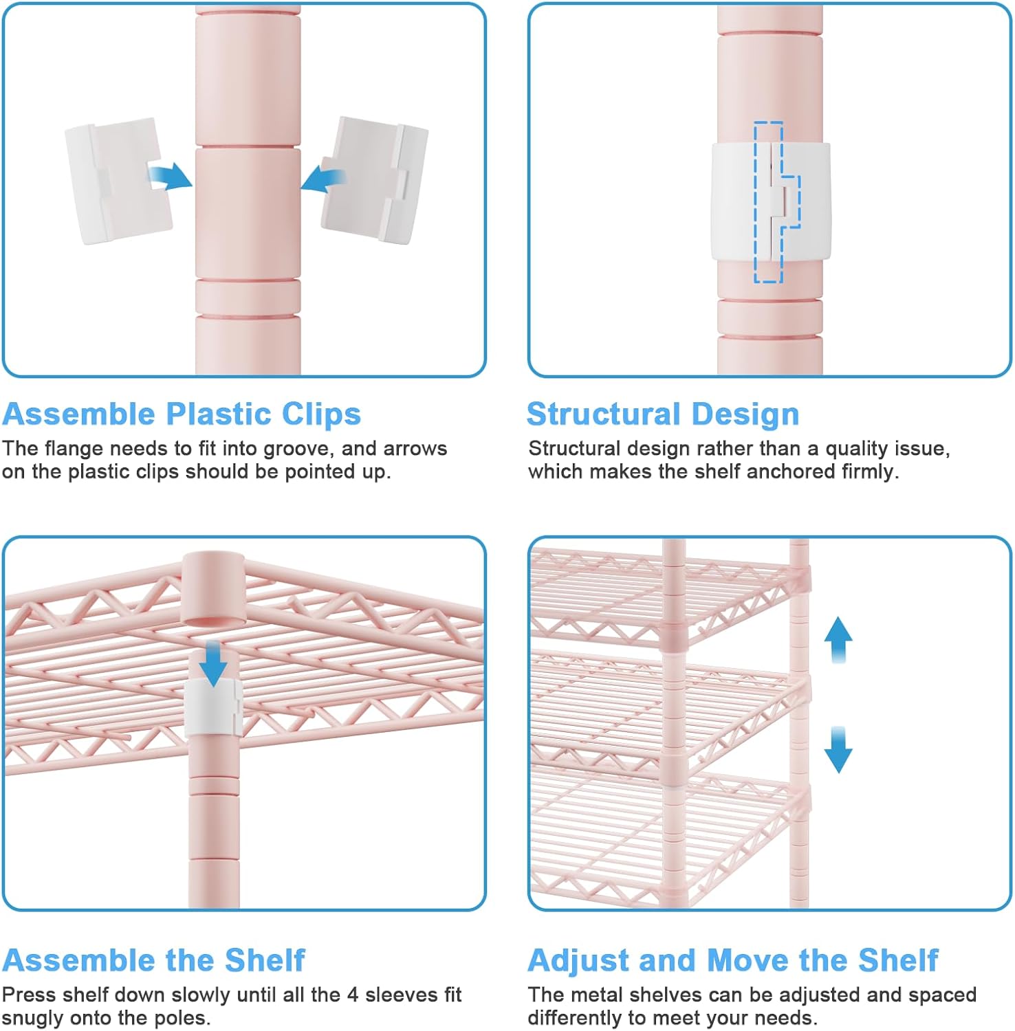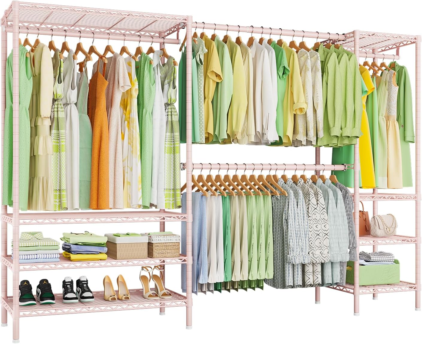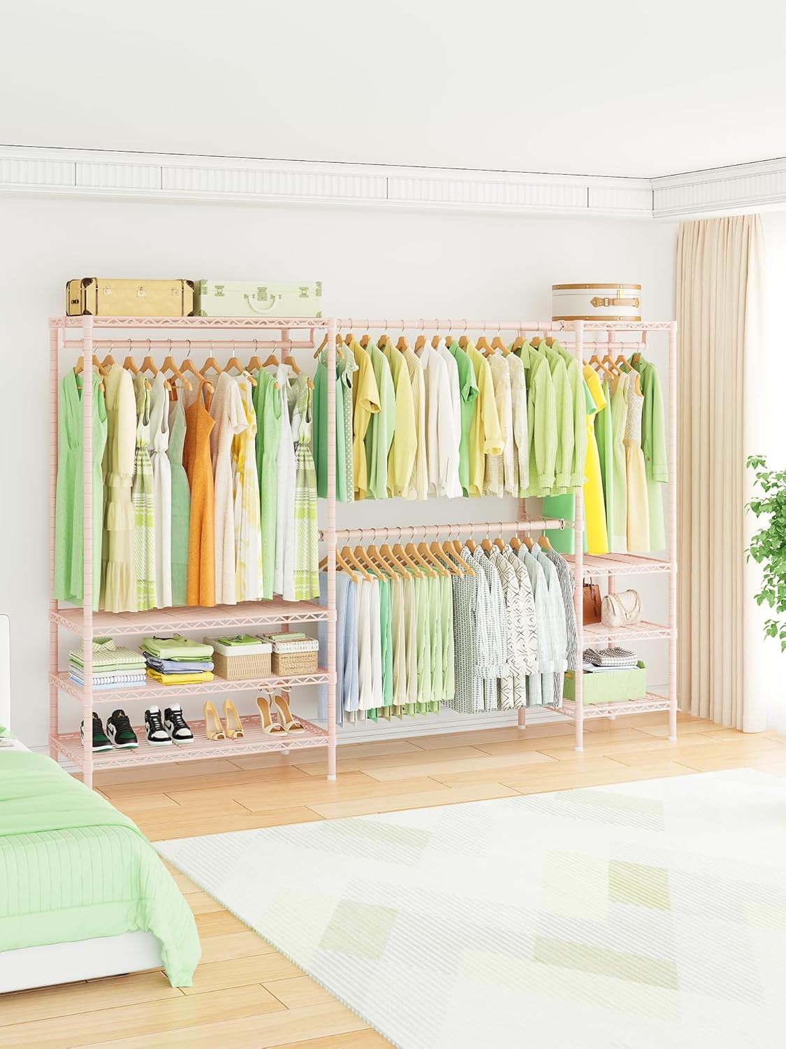 Ulif E11 Heavy-Duty Garment Rack, Metal Freestanding Clothes Rack and Closet Storage Organizer System with 8 Shelves and 4 Hanger Rods, (73.2-97.6)” W x 14.5″ D x 71.2″ H, Load 1034 LBS, Pink
