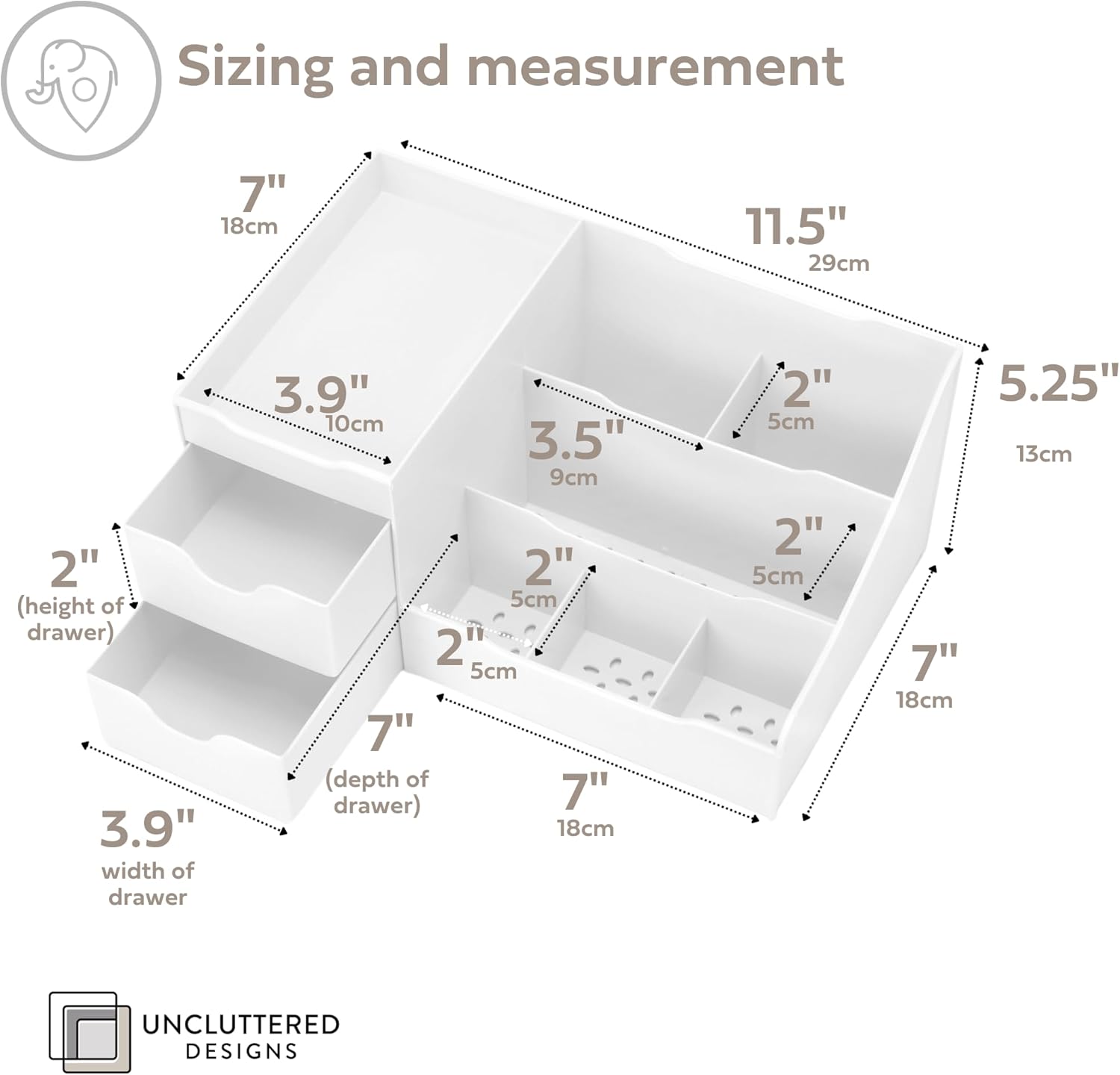 EXTRA DEEP DRAWERS FOR AMPLE STORAGE – Featuring 7 spacious compartments & 2 extra deep drawers, our versatile organizer will store a variety of items from lotions, makeup brushes, lipsticks to office supplies and kitchen essentials.
