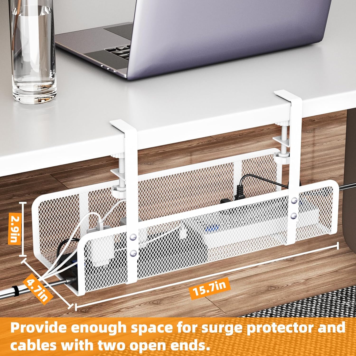 【Ample Storage Space】Our cable management under desk tray can accommodate power strips up to 15.7 inin length and 4.7 in 2.9 in width. Unlike other mesh cable management trays in the market that can only hold one power strip, our tray allows you to store TWO SMALL POWERSTRIPS simultaneously.The under desk cable management tray provides not only a secure and discreet solution but also ample space for your cable organization needs.