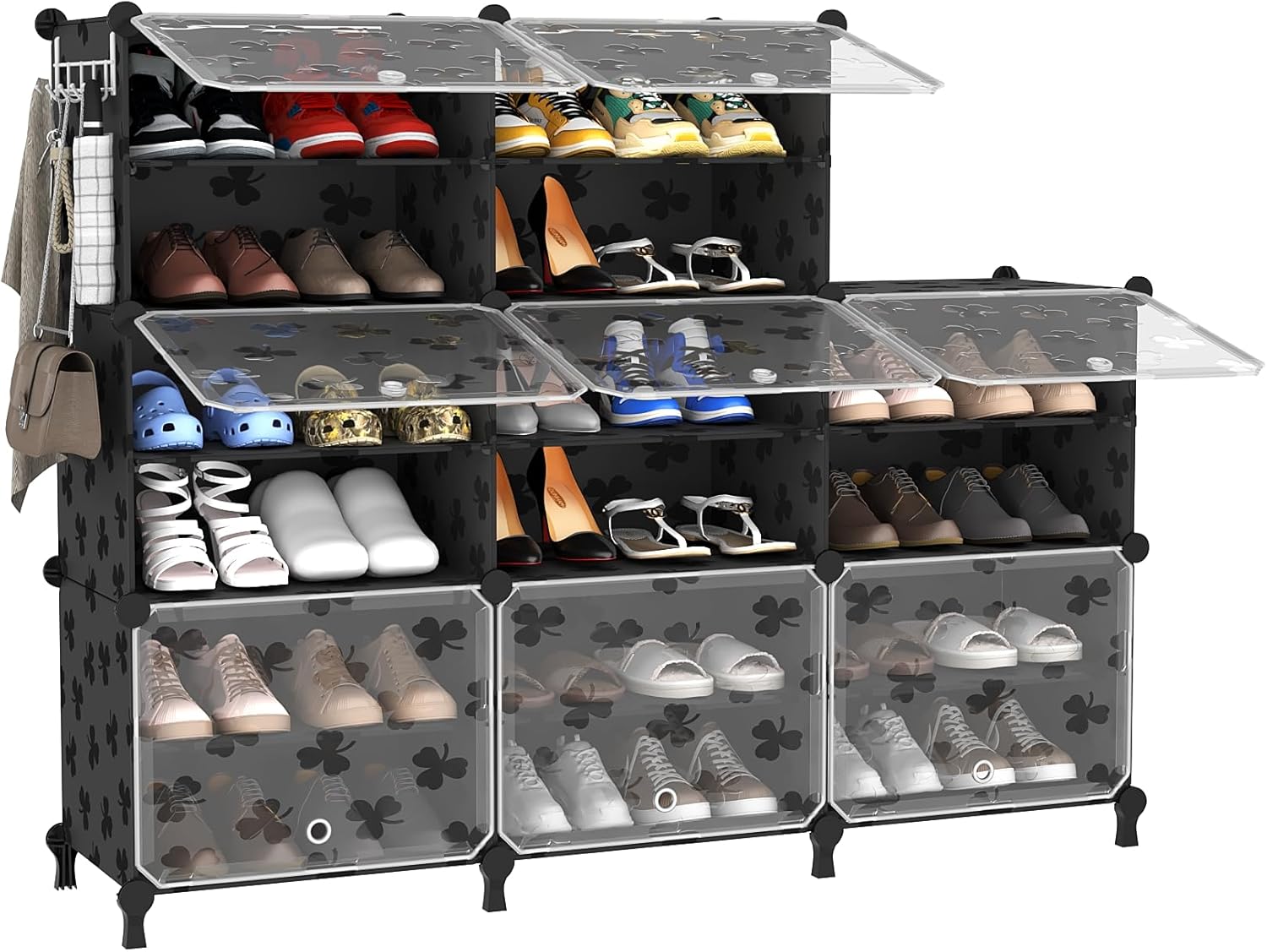 Large Capacity: 8 Cube shoe rack organizer includes 16 compartments (15.7″W x 11.8″H x 11.8″D per cube), storage for variou types of shoes with ease. Such as sneakers, high heels, flats, boots. It holds up to 32 pairs of shoes and keeps your shoes orderly and within reach