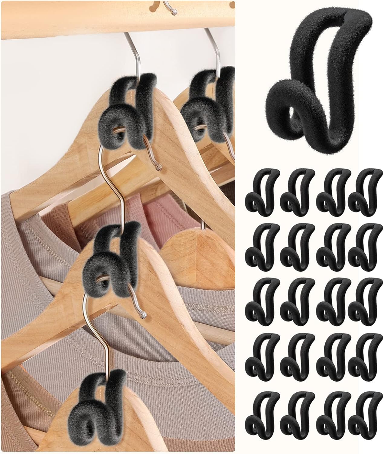 💕【Premium Velvet Coating Flocking】 Durable construction with Non-slip Velvet Texture surface Felt Finish, Snoquir Hanger Hooks keeps the clothes hangeres in place so they don’t slip around & fit nicely on hangers. This clothes hanger connector hooks covered flock coating will not scratch your hangers and will look great with your black flock velvet hangers. You will love using these hanger hooks space saver in conjunction with your black flocked velvet hangers.