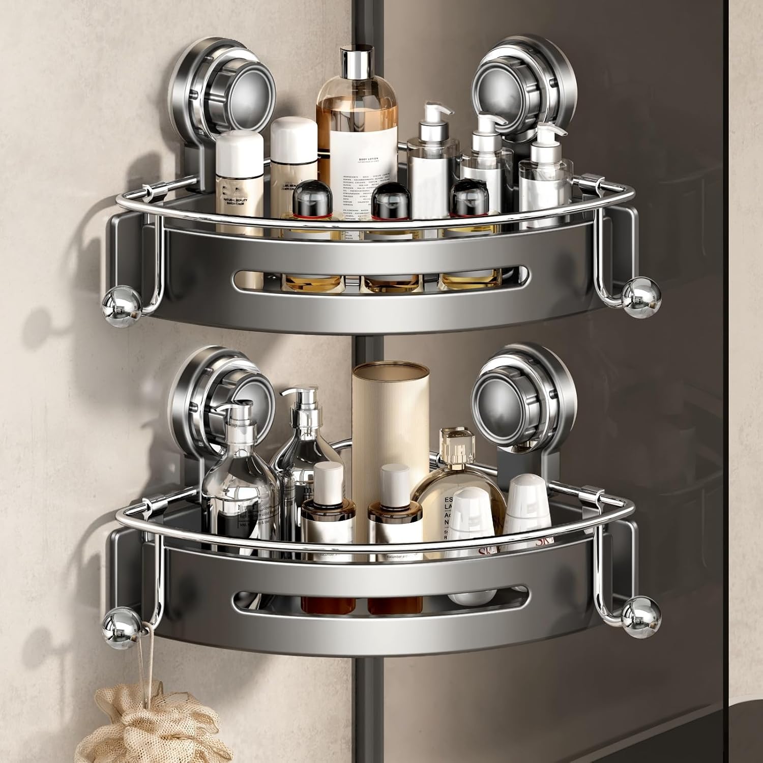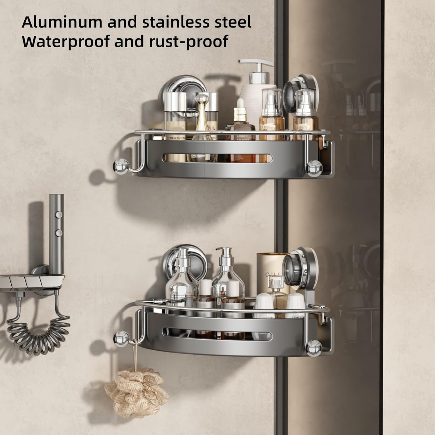 VOLPONE Corner Shower Caddy Suction Cup Shower Shelf Corner No Drilling Bathroom Shower Organizer Storage Rack Adhesive (2-Pack, Gray)