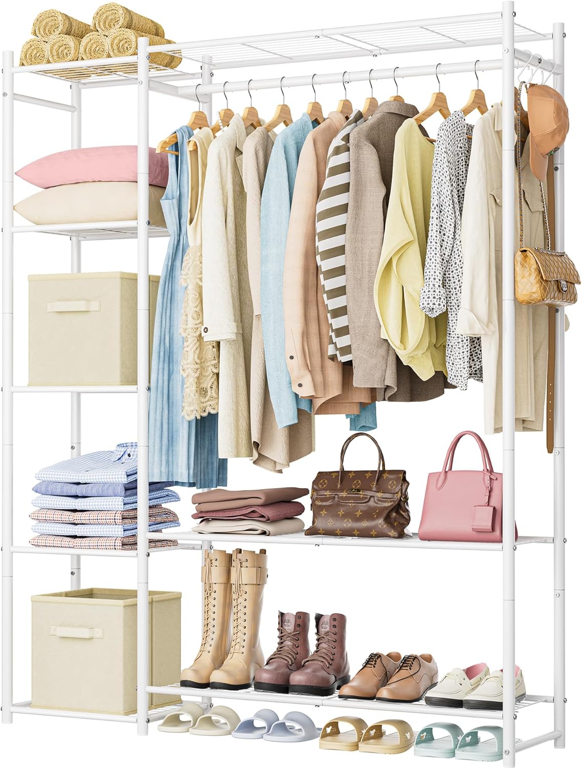 Wardrobe Closet,Portable Clothes Rack with 4 Tiers Shelves,Freestanding Closet Organizers and Storage System with Hanging Rods,Steel Clothing Rack Suitable for Cloakrooms,Bedrooms,Entrances,etc.White