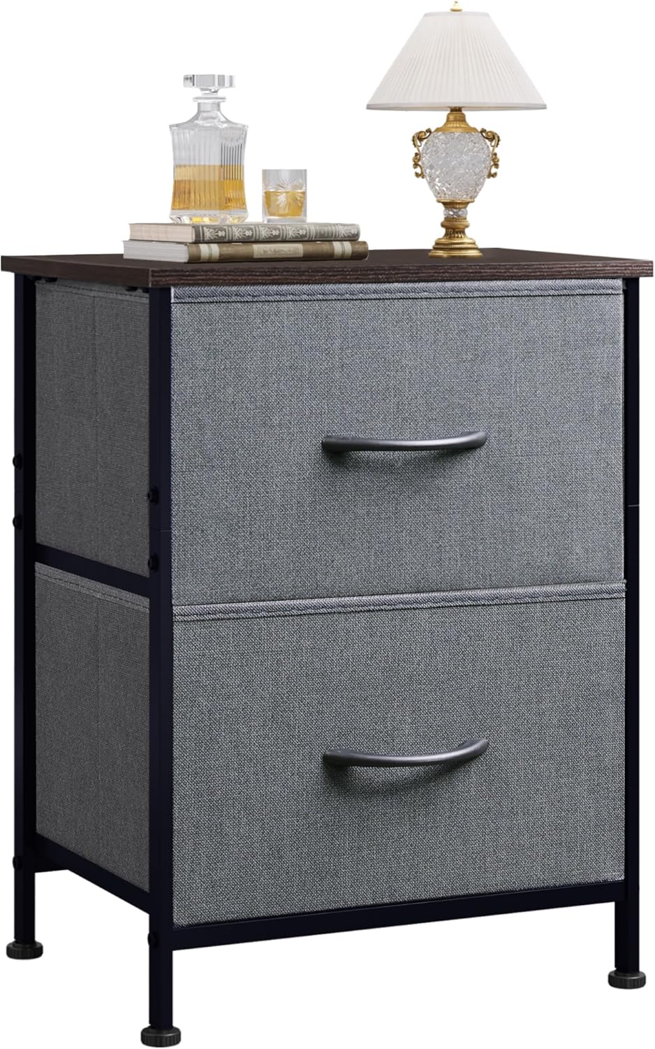 WLIVE Nightstand, 2 Drawer Dresser for Bedroom, Small Dresser with 2 Drawers, Bedside Furniture, Night Stand, End Table with Fabric Bins for Bedroom, Closet, Entryway, College Dorm, Dark Grey