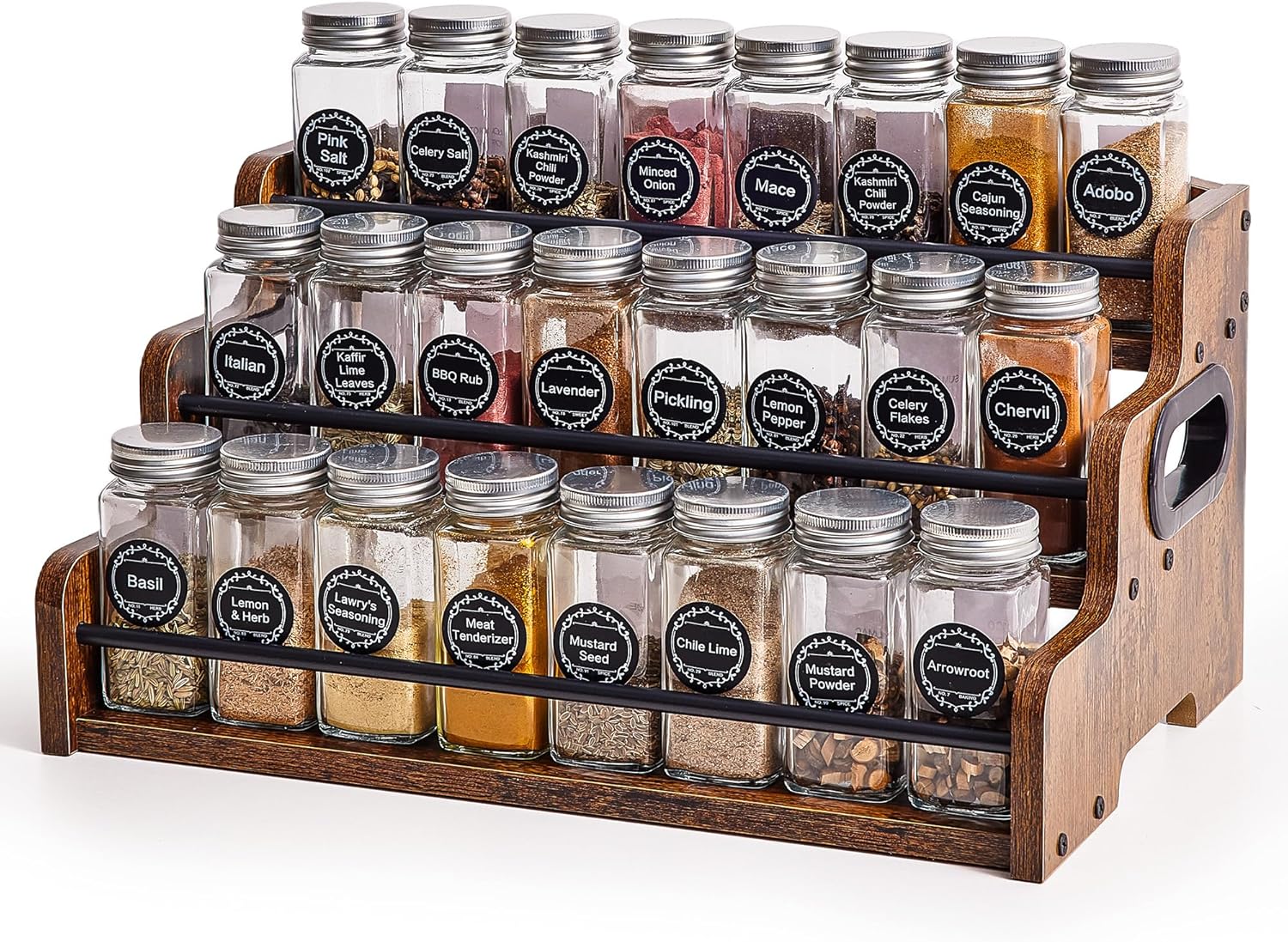 【Durable Wooden Construction 】Kitchen spice organizer is built to last. It works perfectly as a cabinet spice organizer or countertop seasoning shelf, adding a rustic accent while ensuring long-term durability