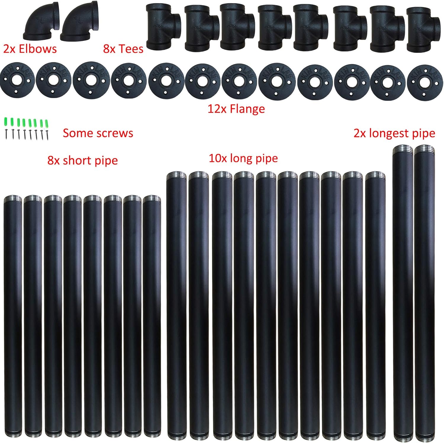 2x Elbows;8x Tees ;12x Flange;10x long pipe 8x short pipe;2x longest pipe;Matching Screws ;