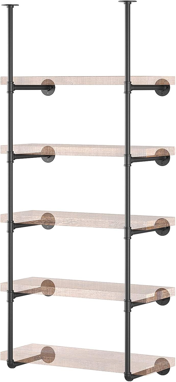 Yuanshikj 2Pc (70″ Tall 12″ deep 3/4″) Industrial Wall Mount Iron Pipe Shelf Shelves Shelving Bracket Vintage Retro Black DIY Open Bookshelf Storage Home Kitchen (2 Pcs 5Tier Hardware only)