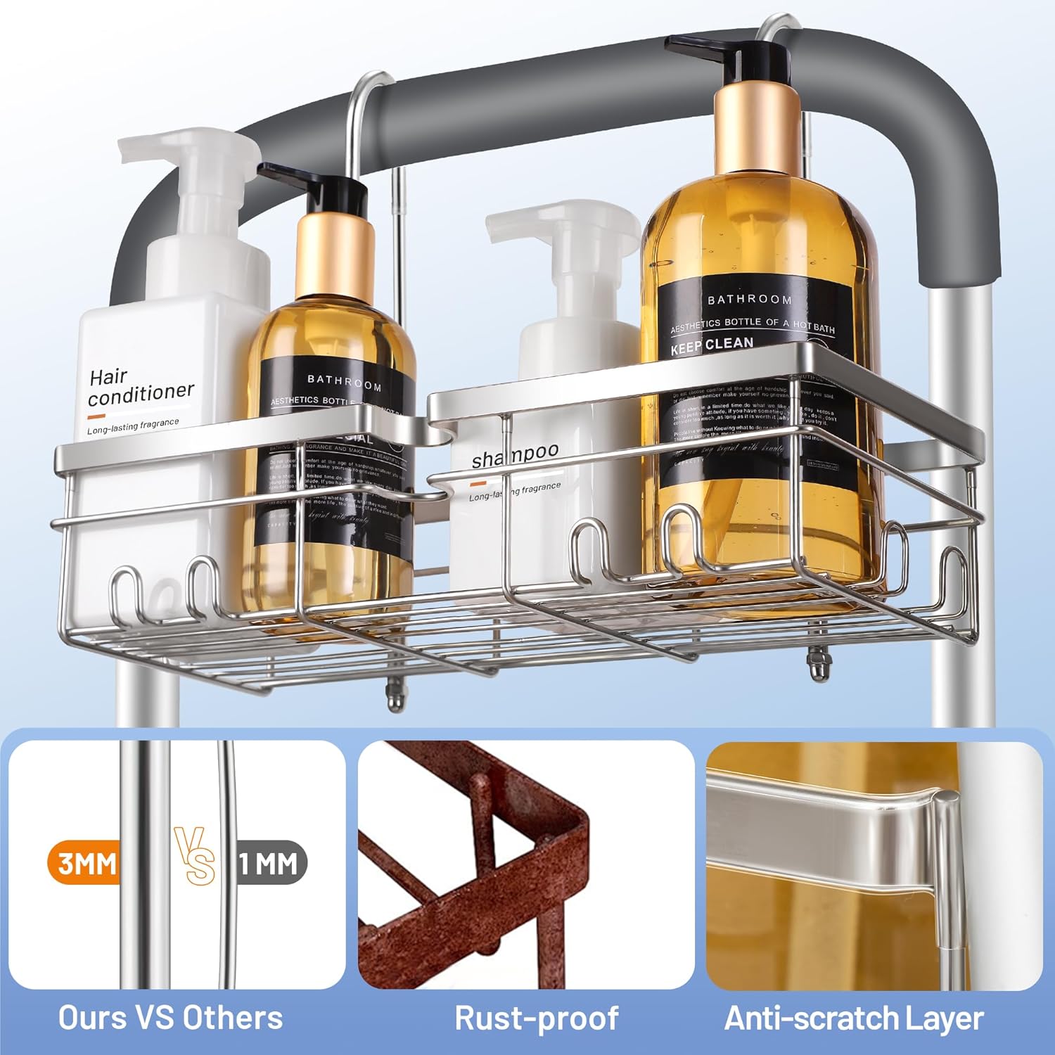 High Quality: Our shower organizer is made of solid 304 stainless steel, durable, rustproof, waterproof, and scratch-proof