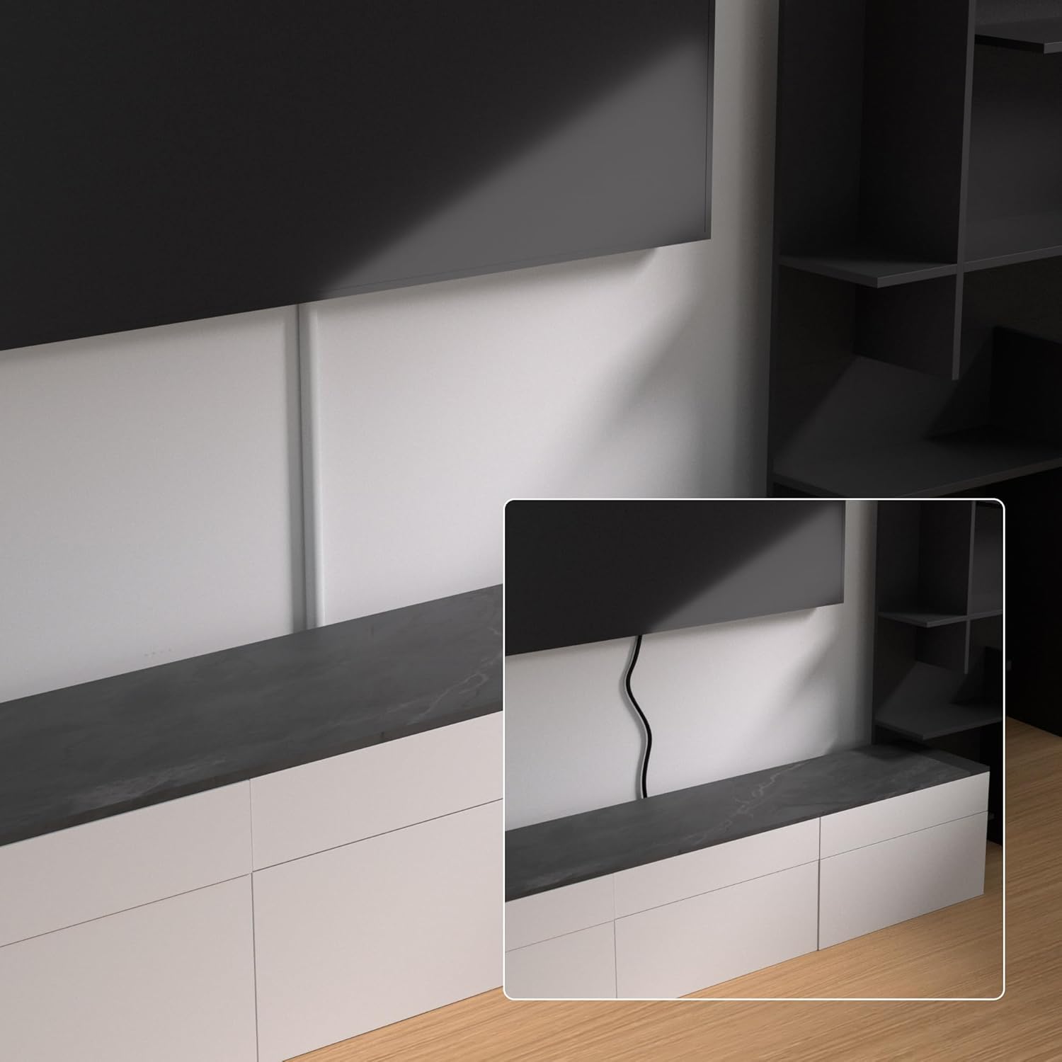 113in Cable Concealer Kit: Includes 8 x 14.2in cable raceways (total 113in). Smooth edges connect seamlessly – no ugly connectors. This tv cord hider for wall mounted TV comes with pre-applied strong adhesive – no screws needed, simply peel and stick for quick, tool-free installation. (Tape not suitable for textured walls)