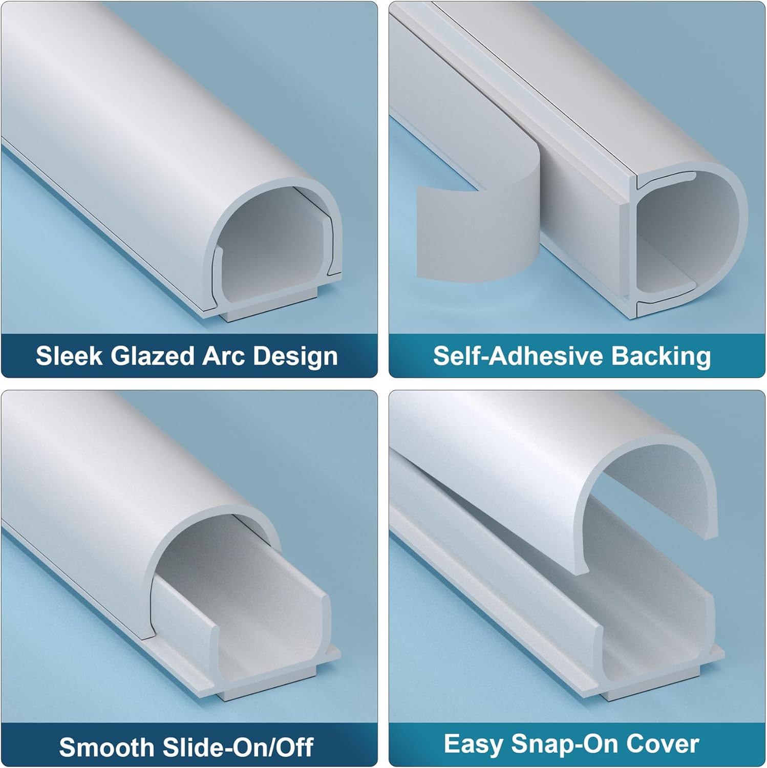 Durable Flame-Retardant Cable Raceway: Crafted from UL94 V-0 flame-rated PVC, this wire cover is fire-resistant, odorless, with an improved texture – perfect for hiding TV cords in homes with kids or pets. Safe and sturdy, the ideal choice for neat wire management