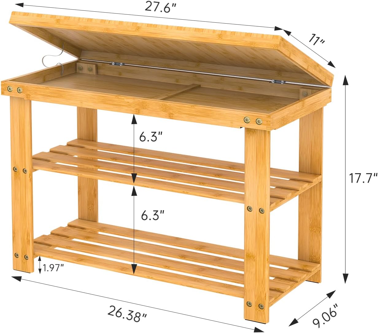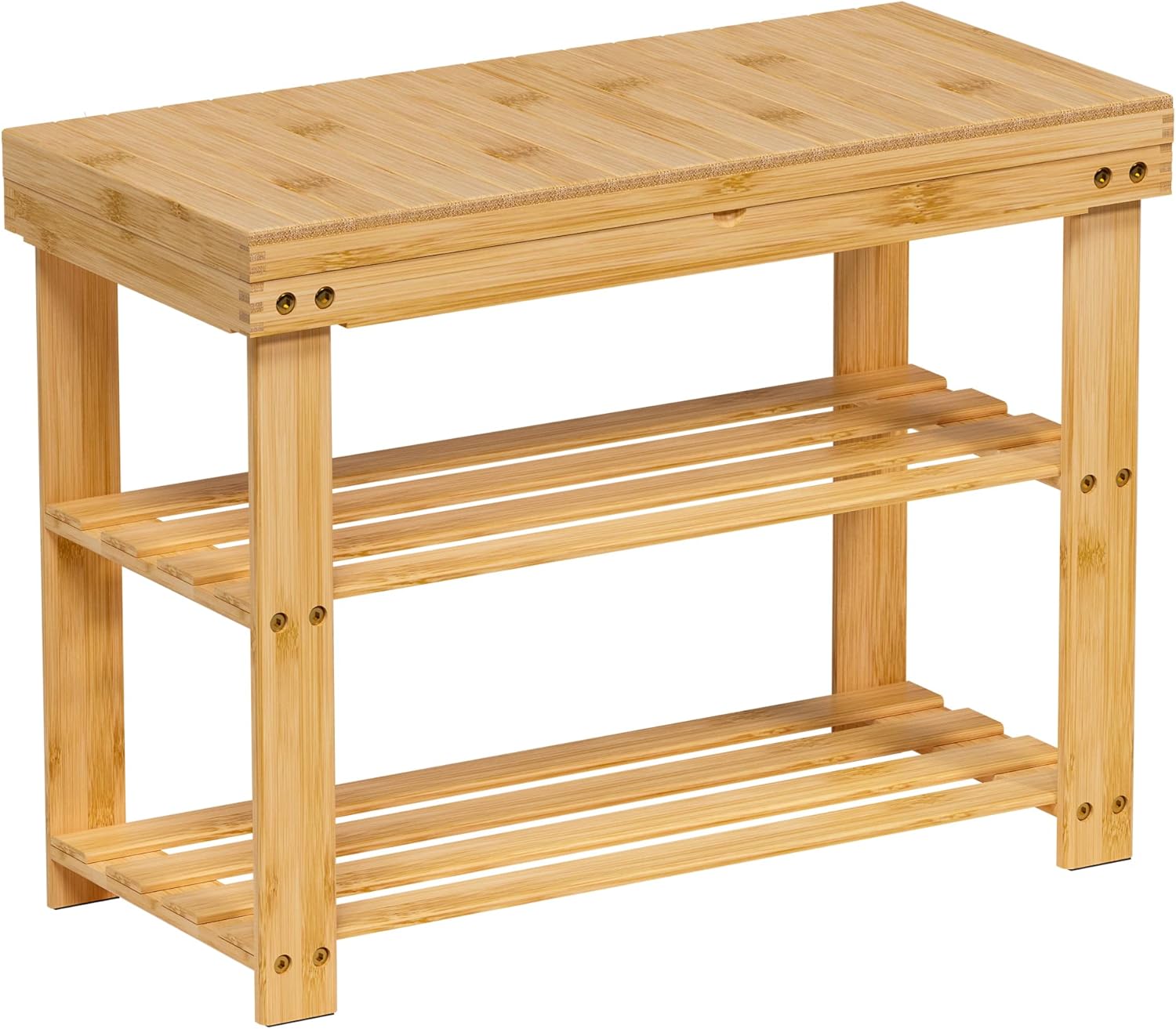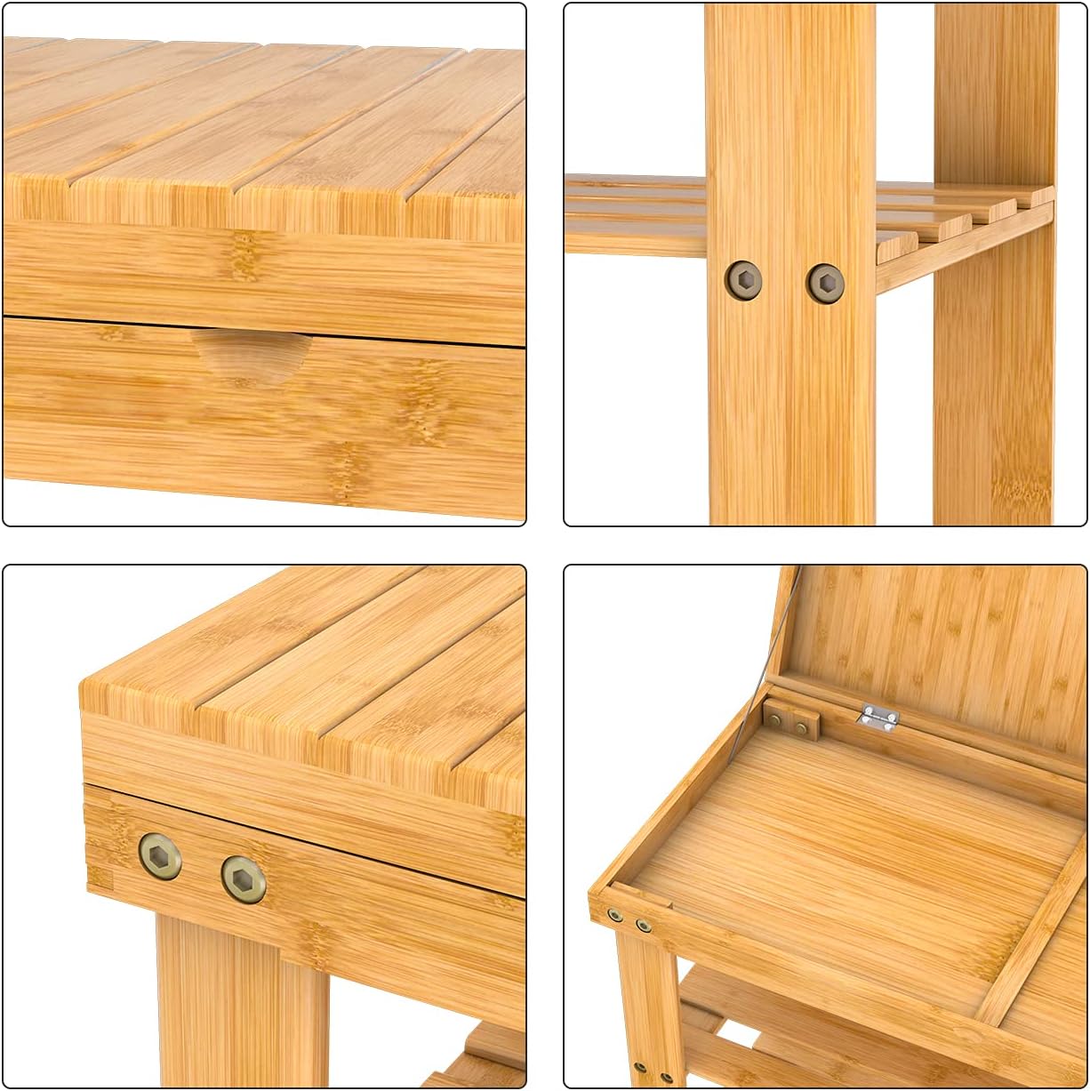 3-in-1 Shoe bench: This shoe bench comes with two-tier storage shelves and hidden storage drawer, storing shoes & surrounding small items, it provides a comfortable seat for changing shoes, and the natural material of the shoe bench adds a fashionable to your room.