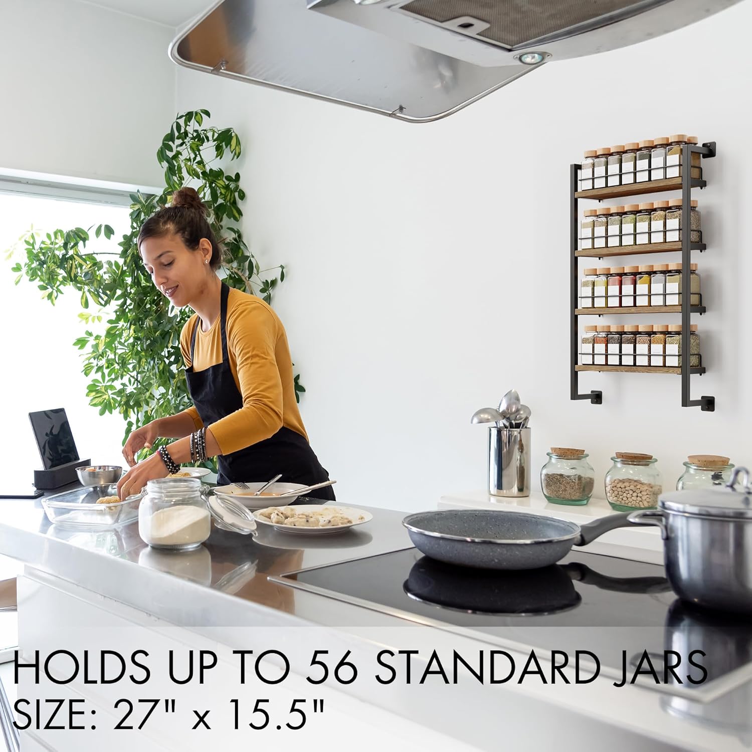ZICOTO Space Saving Spice Rack Organizer Shelf for Wall Mount – Easy To Install Modern Hanging Racks For up to 56 Jars – Perfect Seasoning Organizer For Your Kitchen