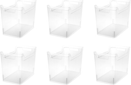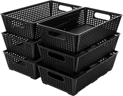 Stackable Woven Plastic Basket, Storage Bins for Cabinet, Closet, Shelf, Under Sink and Countertop, Pantry Organizer Bins, 6 Pack