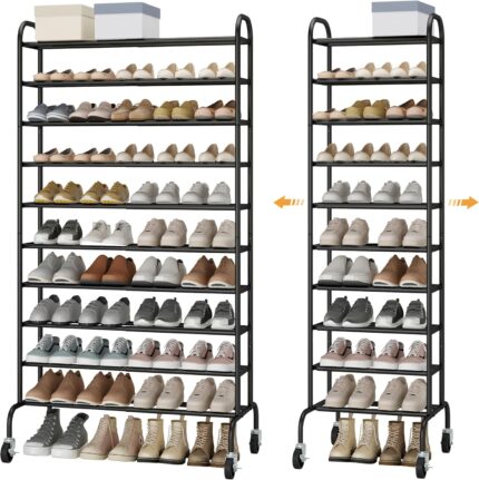 STO STO Expandable Shoe Rack, 10-Tier Metal Tall Shoe Rack for Garage, Up to 44 Pairs Adjustable Shoe Rack Storage for Front Door Entrance, Free Standing Shoe Rack Organizer for Entryway, Black