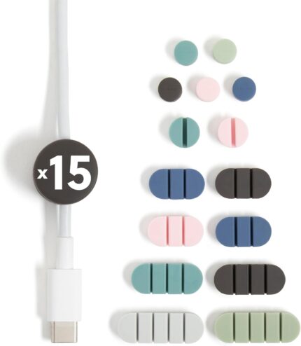 U Brands Adhesive Cord Organizers, Set of 15 Cable Clips, Office Desk Accessories, Office Supplies, Assorted Colors