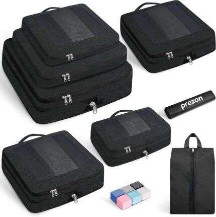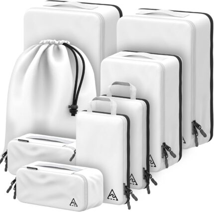 8-Piece Luxury Compression Packing Cubes & Bags for Travel – Maximize Space in Luggage with HybridMax Double-Capacity Design, 50 Luggage Tags, Deluxe Set, Lifetime Satisfaction Suitcase Organizer Bags