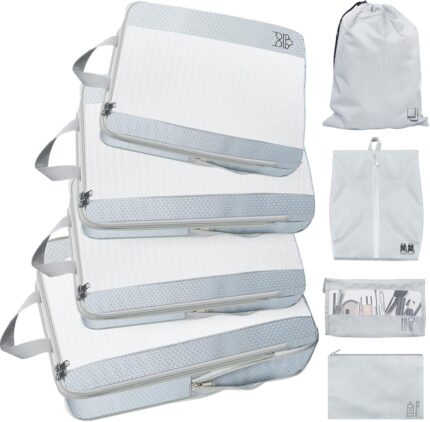 8PC Packing Cubes for Travel Compression Luggage Organizer Bags for Travelers Airline Cruise Car Train Travel Bags Packing Cubes,Grey 8 pcs