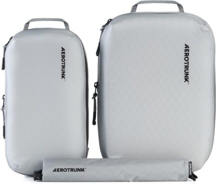 Aerotrunk Ultralight Compression Packing Cubes – Lightweight Travel Organizers for Suitcases and Luggage (3-Pack, Light Grey)