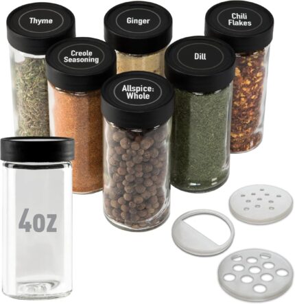 AllSpice 4″ Glass Spice Jars 4 fluid ounces- 6 Pack