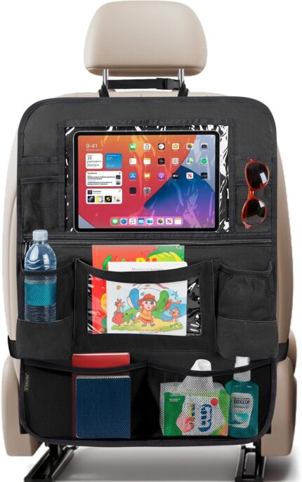 BALEINE Backseat Car Organizer, Back Seat Car Organizers and Storage, Kick Mats Back Seat Protector, Travel Accessories for Most Automotive (1 Pack, Black)