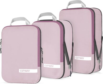 Cipway Compression Packing Cubes for Travel Ultralight Expandable Packing Organizers for Carry on Luggage (Mauve Pink 3 Set)