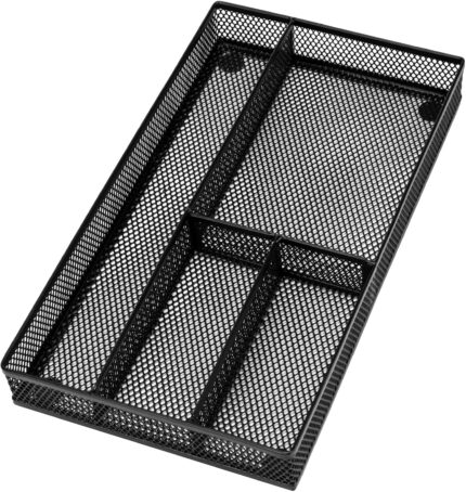 Desk Drawer Organizer Tray,Drawer Organizer for Office and Home,Desk Organizer with Drawers,4 Compartments,Non-Slip Desk Organizers and Accessories for Stationery Makeup School (Black)