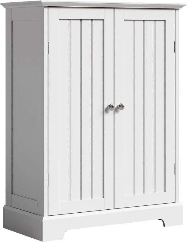 ChooChoo Bathroom Floor Cabinet, Modern Bathroom Storage Cabinet with 2 Doors and Adjustable Shelves, Freestanding Cupboard for Living Room, White
