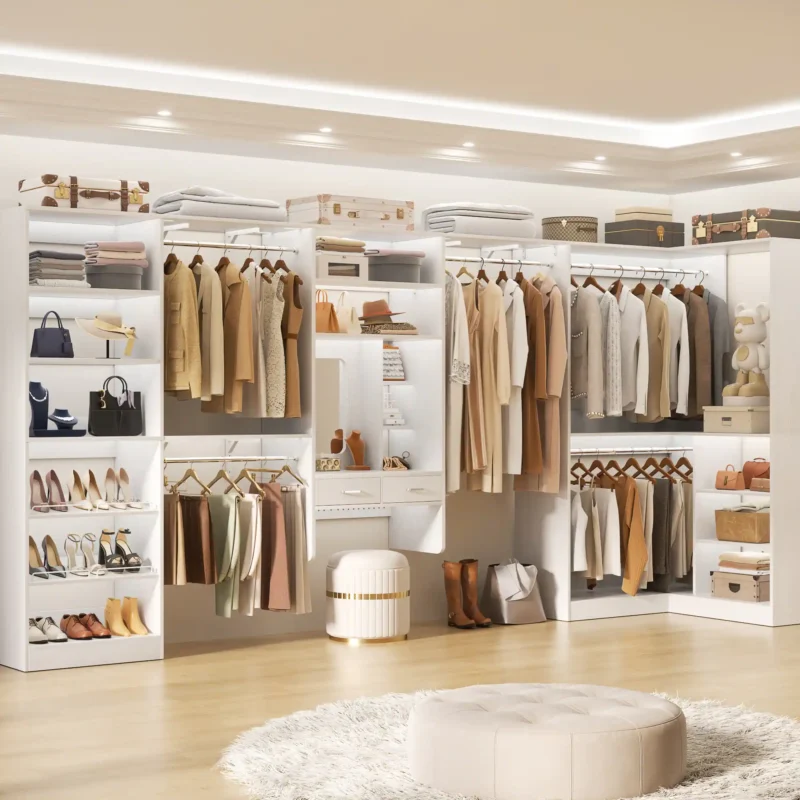 SNSLXH 5 Pack Stackable Closet Storage Basket, Multifunctional & Foldable Closet Organizer for Bathroom Kitchen Laundry Room Wardrobe Storage, Space-Saving Clothes Storage Drawer Organizer, White